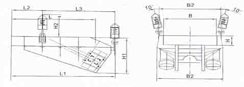 GZG电机振动给料机(电机侧置式)电机转动给料机设计时未考虑仓压倒影响,为保证给料机的正常运行,必须尽量减少仓压对给料机的影响。因此在设计溜嘴时,应用溜嘴的后侧板承担料柱的垂直压力。溜嘴形式及配置尺寸可参考图及表中数值。