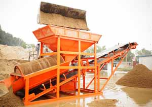 一、产品概述 筛沙机是仿照人工利用斜面筛网筛砂的工作原理,采用平置滚筛筒,并保证料流在筛筒中的多圈内螺旋叶片间可连续滚筛五圈以上,从而使砂料反复翻滚、滑动而充分离散、分离;不同于斜置滚筛引起的大小料相互推挤、埋压,筛分过程匆忙;也不同于斜置振动筛的大小料振跳、混料。