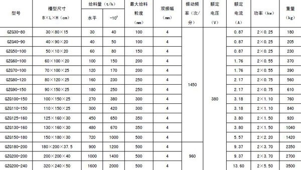 1、生产率的确定:本系列自同步惯性振动给料机的生产率是以河沙为标准物料给出的(堆比重为1.6t/m3)。当物料堆比重大于1.6t/m3时,其产量可按额定值选??;当物料的堆比重在1.2-1.6t/m3时,其产量可达到额定产量的0.9-1.0倍。当物料堆比重在0.8-1.2t/m3时,其产量可达到额定值的0.8-0.9倍。物料堆比重小于1.6t/m3时,须适当增加料层厚度,以提高产量。 对于振动给料机难于输送的物料(如滑石粉、钛白粉、白泥、面粉、粘土等),以及含水量较大的亲水性物料,则应根据试验确定产量。必要时将槽体适当倾斜安装(一般向下倾斜10-15°),以增加给料量。