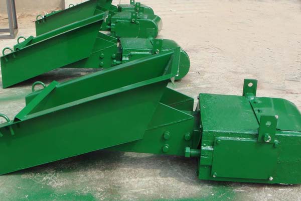 电磁振动给料机是由料槽和底座组成的双质点谐振系统。电磁铁在本的脉冲磁力,补充了谐振系统的能量损耗,使其保持一定的振幅,电能损耗小。料槽以一定的角度振动,使物料上抛前进,除水平输送外还能以一定角度上下输送,使用灵活。 电磁振动给料机是一个较为完整的双质点定向强迫振动的弹性系统, 整个系统工作在低临界共振状态,主要利用电磁激振器驱动槽体以一定的倾角做往复振动,使物料沿槽移动。