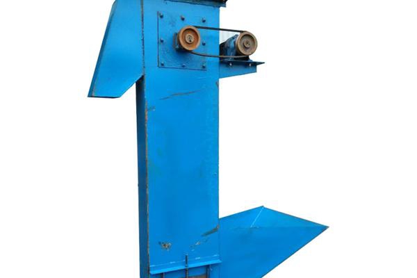斗式提升机是一种应用广泛的垂直输送设备,用于在垂直方向或大倾斜角上输送各种松散颗粒和破碎物料。在工作时,斗式提升机的料斗把需要物料从下面的储藏室中舀起,随着输送带或链提升到顶部,绕过顶轮后向下翻转, 将物料倒入接受槽内。带传动的斗式提升机的传动带一般采用橡胶带,装在下或上面的传动滚筒和上下面的改向滚筒上。