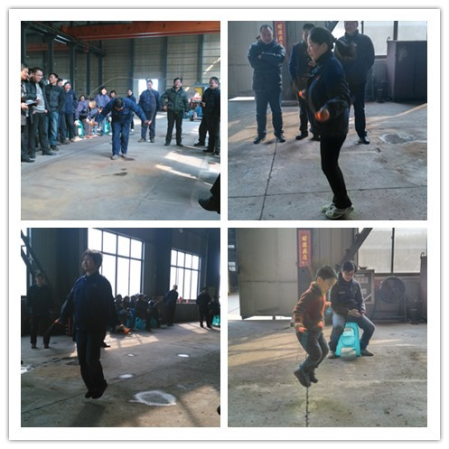 2015年2月11日和煦的阳光照射大地,驱散了多日的严寒,海安县联源机械制造有限公司在这辞旧迎新之际,为增强员工凝聚力和归宿感,激发员工的感恩心与荣誉感,为自己、为公司,更努力、更有价值感地投入工作,举行一次公司全体跳绳活动,分别评出了男、女,青年、中老年组,各部门团体组合的前三名?;疃崾螅居肿橹巳逶惫そ辛四甑椎木鄄突疃?,活动中大家举杯同庆,共祝公司2015年更上一层楼!