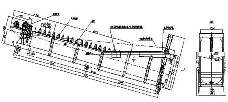 - 脱水:比重较大的颗粒沉入槽底,在槽底弯板一边,由螺旋叶片将砂石向上推进。由于水槽长度超出下部水平线有一个合适和长度,在向上推进过程中,除去砂石多余水份,脱出的水从槽底另一侧排水沟流入沉淀池,砂石则从水槽上端槽底排料口排出。